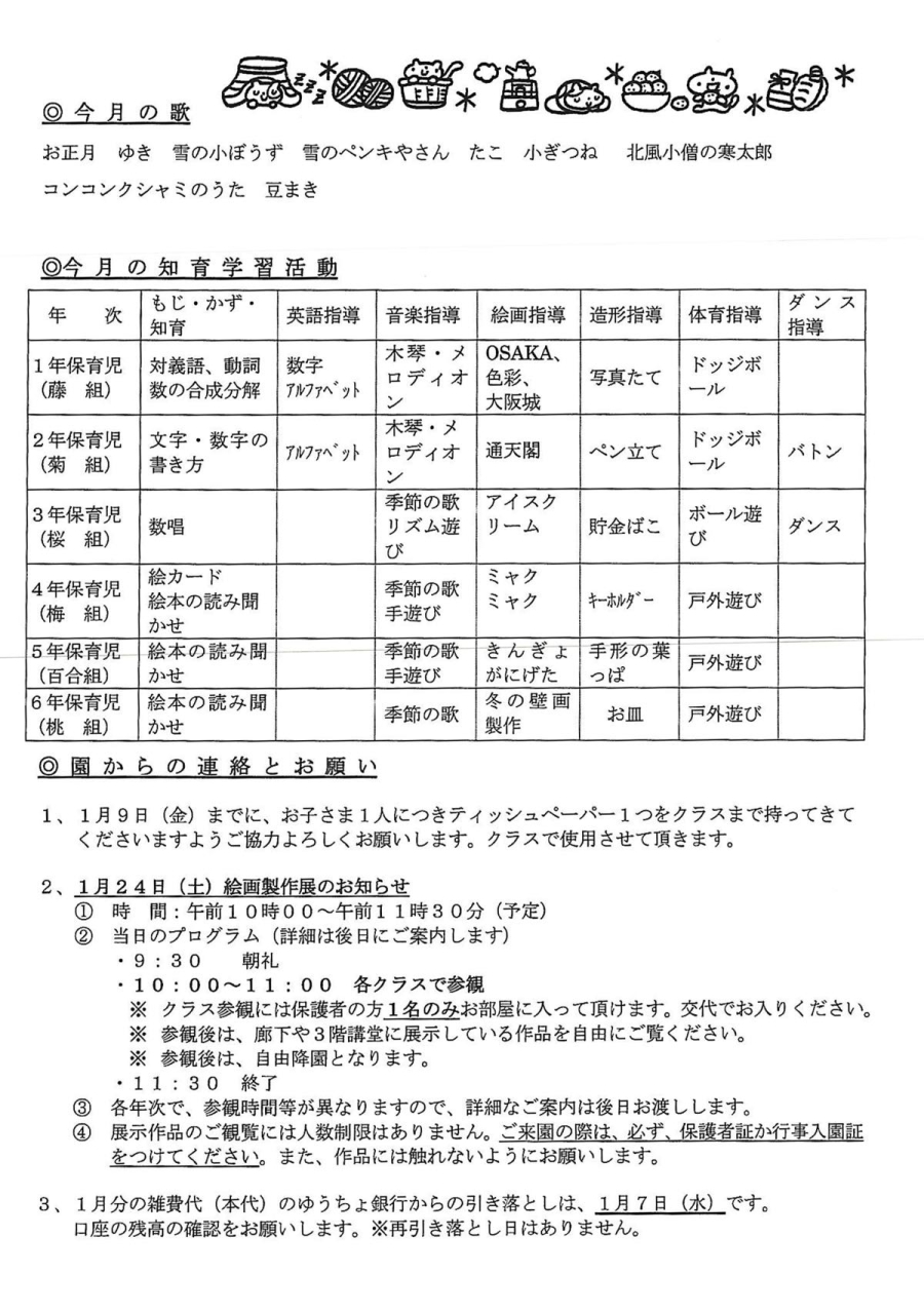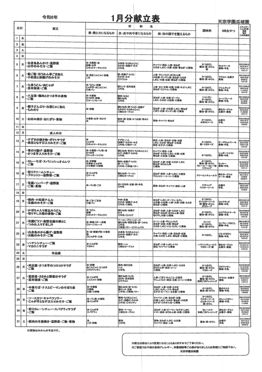 天宗だより&献立 令和8年1月